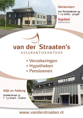 Werkendam Van Randwijklaan 49 T +31 (0)183 - 501598 Werkendam • Verzekeringen • Hypotheken • Pensioenen Wijk en Aalburg Anjelierstraat 35 T +31 (0)416 - 724600 www.vanderstraaten.nl