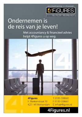 Ondernemen is de reis van je leven! Met accountancy & nancieel advies helpt 4Figures u op weg. 4Figures T: 0183-308660 Ir. Blankenstraat 10 F: 0183-308661 4251 NR Werkendam E: info@4 gures.nl 4Figures.nl