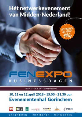 Hét netwerkevenement van Midden-Nederland! 940,-DEAELLVNAENMAEFN Info: 0183 - 820 230 • www.fenexpo.nl 10, 11 en 12 april 2018 • 15.00 - 21.30 uur Evenementenhal Gorinchem magazine ZAKENDOEN – INSPIREREN – NETWERKEN