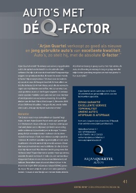 zijn soort en voor de hoogste kwaliteit. Ik lever alleen au- Arjan Quartel auto’s; auto’s met de Q-factor.
